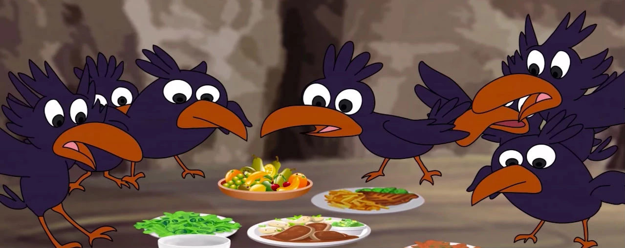 Có lần, có người đàn ông đi vào rừng và nghe thấy tiếng quạ kêu. Lần theo tiếng quạ, người đàn ông tới nơi thì quạ nói: