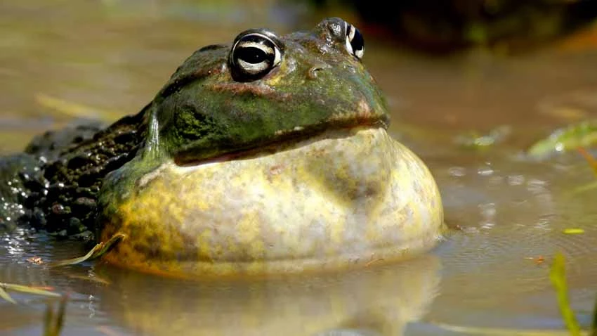 Ếch trâu là một loại ếch có kích thước lớn, thân dài khoảng 20 cm. ếch đực có túi âm thanh, tiếng kêu rất vang, nghe từ xa giống như tiếng trâu, bò rống, vì vậy gọi là "ếch trâu". Loại ếch này tính tình hung dữ, trong giới tự nhiên, ếch đực thường chiếm một địa bàn nhất định như đầm lầy hoặc ruộng nước làm lãnh địa riêng của mình. Nếu một con ếch đực khác muốn xâm phạm lãnh địa này thì chủ nhân sẽ giống như một con thú dữ lao vào tấn công kẻ xâm chiếm, và thế là xảy ra một trận quyết đấu.