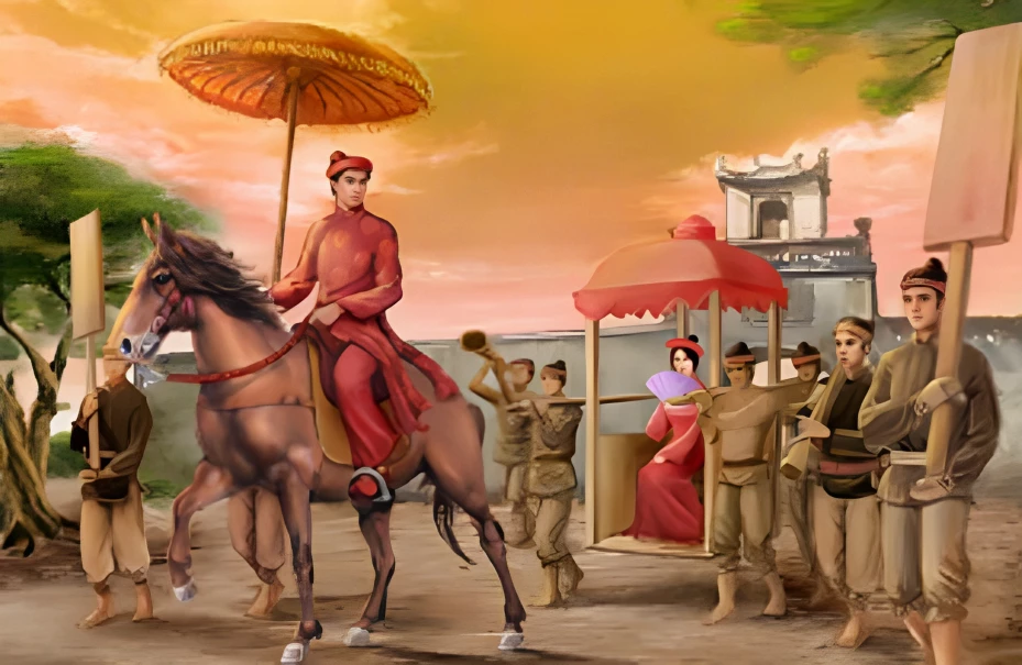 Tưởng đã tuyệt đường hy vọng thì nay bỗng nhiên thấy sai nha về nhà ông báo trước, đúng họ, đúng tên, đúng tuổi, đúng quê hương bản quán của con trai. Ông mừng mừng rỡ rỡ, tựa như người chết mà sống lại vậy, vội vàng sai người nhà quét tước, sửa sang nhà cửa, mổ lợn mổ bò, mua sắm của ngon vật lạ... để chuẩn bị đón quan Trạng nguyên tân khoa, khao vọng các hàng chức sắc trong phủ trong huyện trong xã, và dân làng.