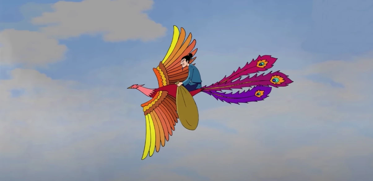 Đường thì xa, vàng thì nặng, chẳng mấy chốc chim thần đã thấm mệt. Mấy lần chim bảo người anh vứt bớt vàng đi cho nhẹ nhưng anh ta vẫn khăng khăng ôm lấy túi vàng không chịu buông. Khi bay qua biển, bất ngờ có một cơn gió lớn thổi lên, chim không chịu nổi nữa liền nghiêng cánh. Thế là người anh tham lam cùng túi vàng rơi tòm xuống biển...