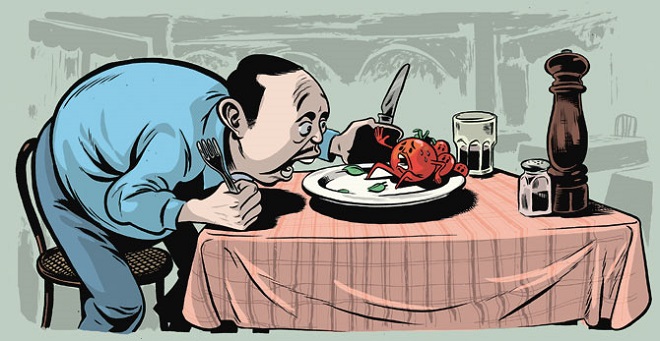 Chủ tiệm: – Bồi, hãy đổi dao cho ông ấy!