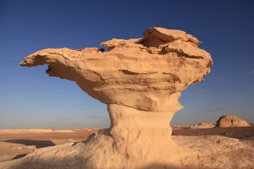 Trong sa mạc, thỉnh thoảng bạn sẽ bắt gặp từng hòn nham thạch cô độc nhô lên như cây nấm đá, có hòn cao đến 10 m. Ngắm cái “bụng” thon và cái “đầu” nặng nề của nó thật thú vị. Chúng là kiệt tác của nhà điêu khắc nào vậy? Của nhà điêu khắc vô danh - gió trong sa mạc.