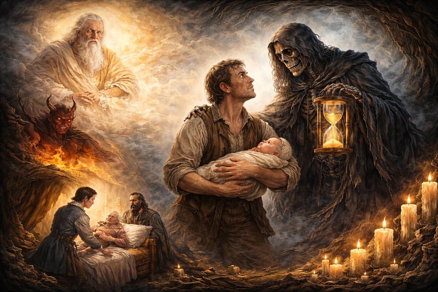 Như đã hứa, đúng hẹn Thần chết đến và làm hết mọi việc của người cha đỡ đầu.
