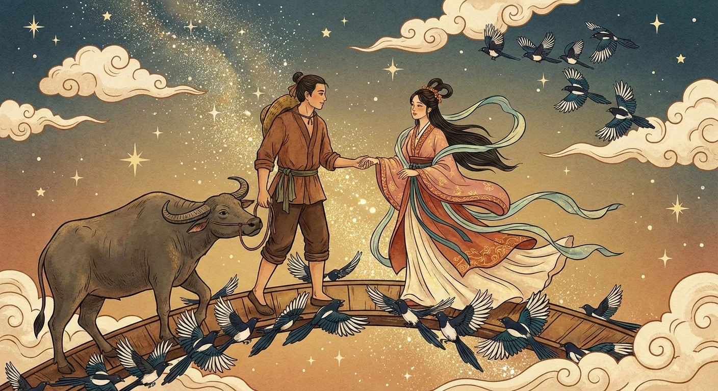 Ngày xưa, ở làng Ngưu Gia nằm ở phía tây Nam Dương có một chàng trai thông minh, trung hậu, tên là Ngưu Lang, vì cha mẹ qua đời sớm, Ngưu Lang đành phải sống cùng với anh trai và chị dâu. Chị dâu họ Mã, là người rất độc ác, thường hành hạ Ngưu Lang, bắt Ngưu Lang làm việc cật lực. Một năm vào mùa thu, chị dâu bắt Ngưu Lang phải đi chăn bò, chị dâu chỉ cho Ngưu Lang mang theo 9 con bò, nhưng lại yêu cầu Ngưu Lang lúc về phải có 10 con mới được về nhà, Ngưu Lang không còn cách khác, buộc phải cùng với đàn bò, rời khỏi làng.