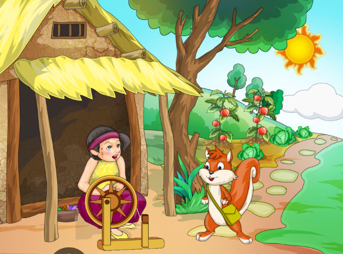 Sóc con lại đi đến nhà cô gái út. Cô đang nhào bột. Sóc con đưa thư cho cô út. Đọc thư xong cô hốt hoảng, tát tả đi thăm mẹ ngay.