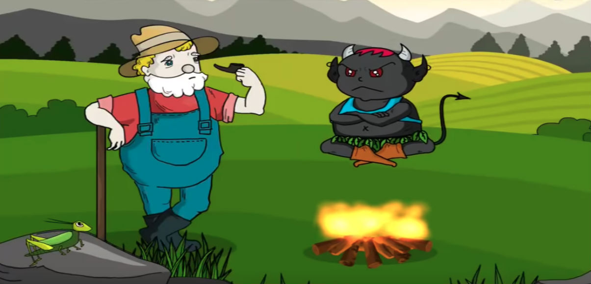 Thế là cả ba lần, nhờ trí thông minh, người nông dân đã thắng quỷ tham lam và ngu xuẩn.