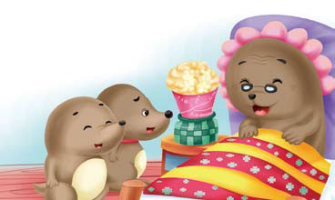 Ba anh em cùng hướng mắt về phía lò sưởi. A! Hạt ngô vừa nãy đã nở thành một bông hoa bỏng to ơi là to, lại còn có mùi thơm phức rất hấp dẫn nữa chứ! Ba chú Chuột chũi phấn khởi lắm.