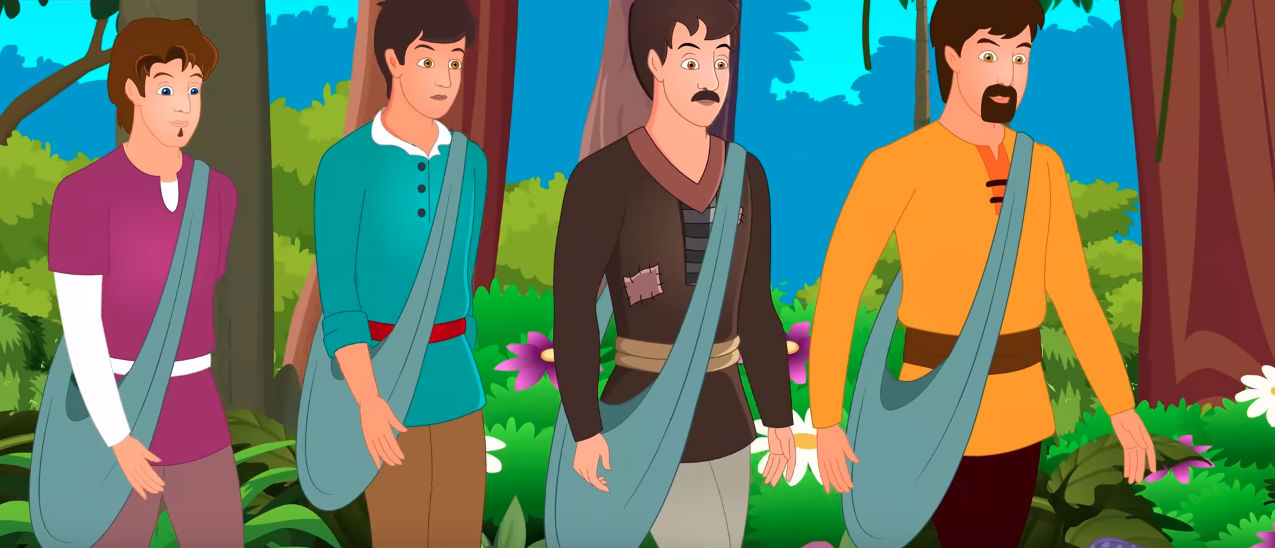 Vì vậy ba anh em tới gặp đức vua và nói họ rời bỏ chức vụ để đi tìm sự nghiệp ở nơi khác. Họ xin cha cho ngựa và tiền để mua trang phục và vũ khí. Vua cha cho mỗi người một con ngựa tốt và tiền để sắm sửa trang bị. Ba anh em ra đi.