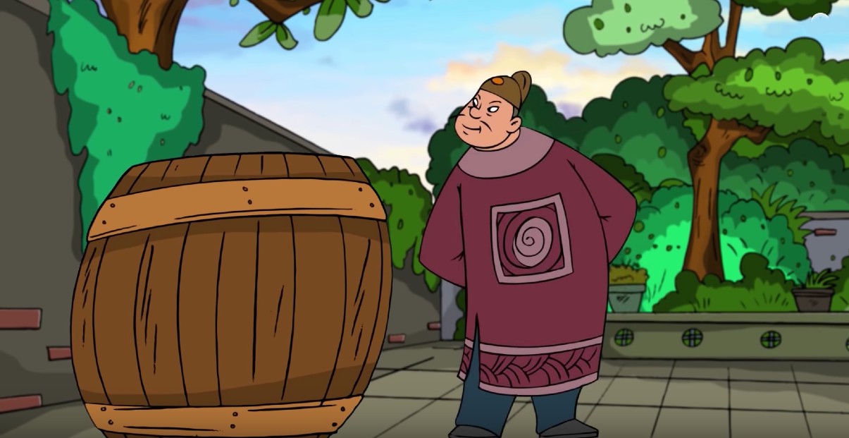 Và hắn lấy đi cái thùng của người nông dân. Nhưng quan huyện cũng biết được lại đến nói với tên điền chủ: