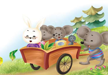 “Nào, Thỏ mẹ, hãy ngồi lên xe của tôi, tôi sẽ đưa chị về nhà.” Chuột đồng vừa nói vừa giúp Thỏ mẹ vác bao củ cải đặt lên xe.