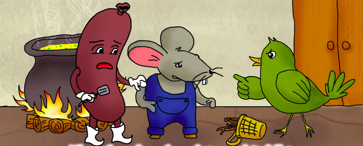 Ngày xửa ngày xưa, có một con chuột nhắt sống chung với chim sẻ và dồi nướng. Chúng sống chung với nhau rất hòa thuận, ăn nên làm ra. Công việc của chim sẻ là hàng ngày vào rừng kiếm củi mang về, còn chuột nhắt thì đi xách nước, nhóm lửa chất bếp và dọn bàn ăn, việc nấu nướng thì do dồi đảm nhiệm.