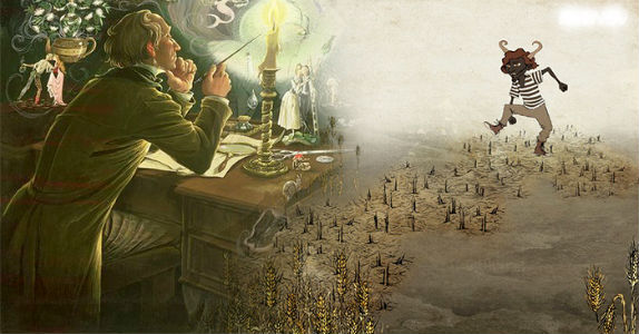 Nó trèo lên thang gác nhà bếp, lên đến tận căn gác xép tồi tàn của chàng sinh viên. Bên trong vẫn còn sáng. Con quỷ sứ nhòm qua lỗ khóa thấy chàng sinh viên đang ngồi đọc những trang sách nát trong cuốn sách của ông chủ hàng. Nhưng sao căn phòng lại sáng đến thế ! Cuốn sách phát ra một tia sáng tỏa ra như một gốc cây, vươn lên rất cao và xõa cành trên đầu người đọc sách. Tấm lá nào cũng tốt tươi, mỗi đóa hoa là một cái đầu thiếu nữ xinh tươi với những cặp mắt huyền đen láy hoặc những đôi mắt xanh cực kỳ trong sáng. Mỗi quả là một vì sao lấp lánh và trong phòng vang lên tiếng đàn hát mê hồn.