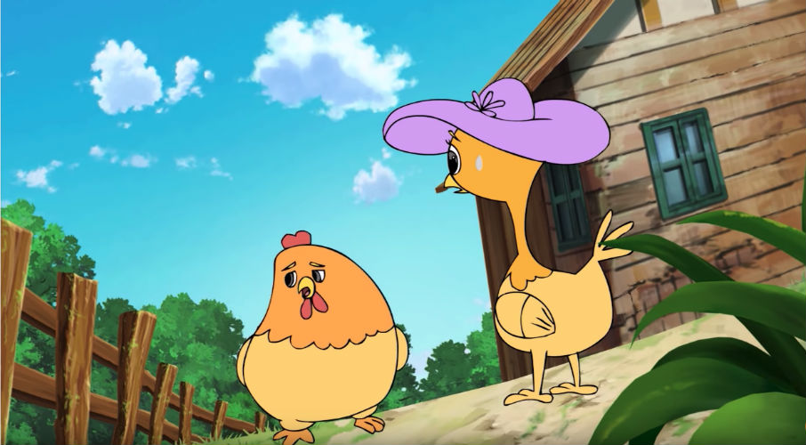 Gà trống chạy tới chị gà mái tơ nói: