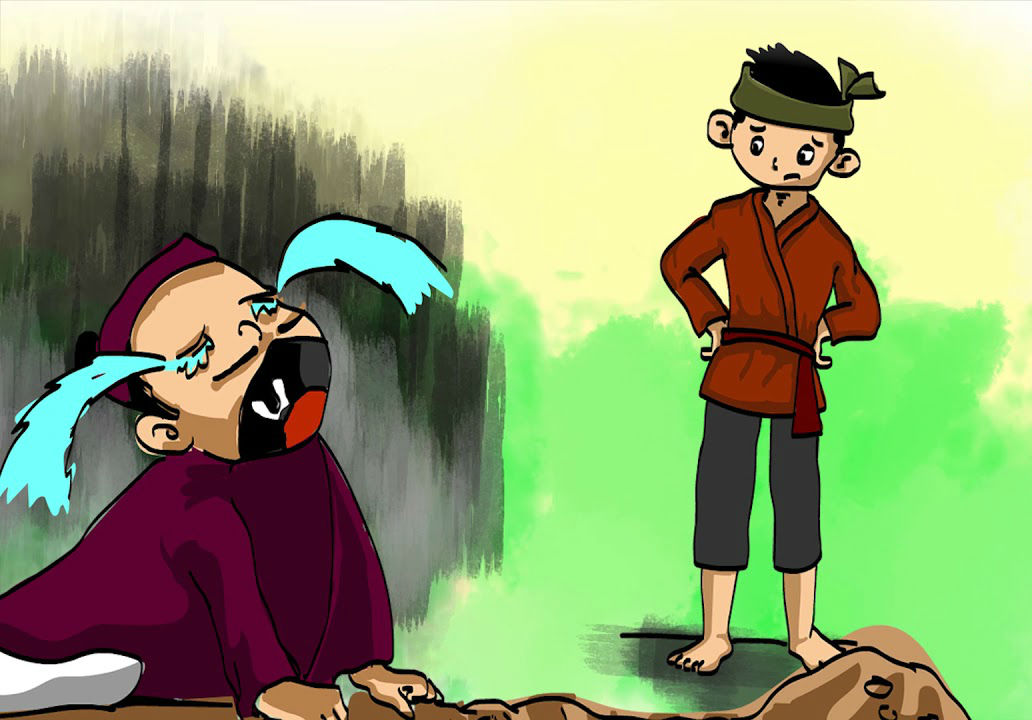 Một người đi ngang nghe thấy tiếng gã khóc bèn hỏi có chuyện gì vậy.