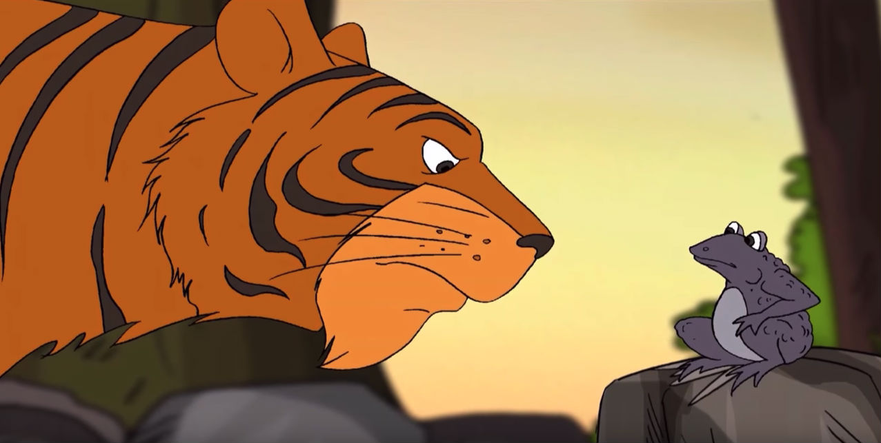 Cọp giận quá, nhìn thấy Cóc Tía chỉ to hơn quả trứng vịt, mới quát: