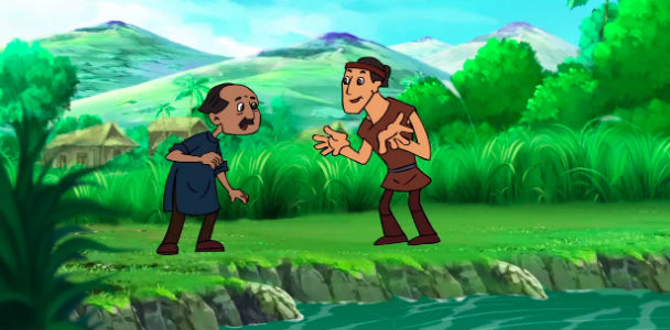 Giờ mỗi người vào thành bằng một cổng, và từ hai phía cùng đến chỗ vua ngự. Hai anh em từ hai ngã cùng một lúc tới hai cổng thành, lính canh ở hai cổng cùng vào trình báo vua là phó vương dẫn mấy con vật đi ăn đã về. Vua phán: