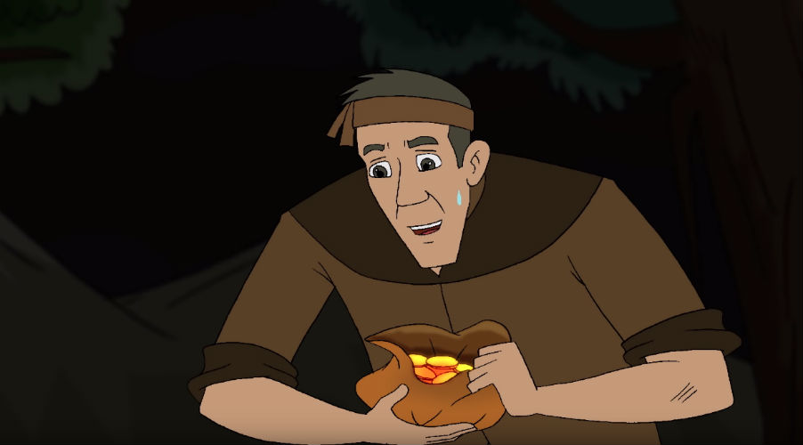 Chẳng đợi nhắc đến lần thứ hai, bác nông dân vào kho, nhét tiền đầy các túi rồi đi ra. Bác đi thẳng tới một quán trọ để đếm tiền.