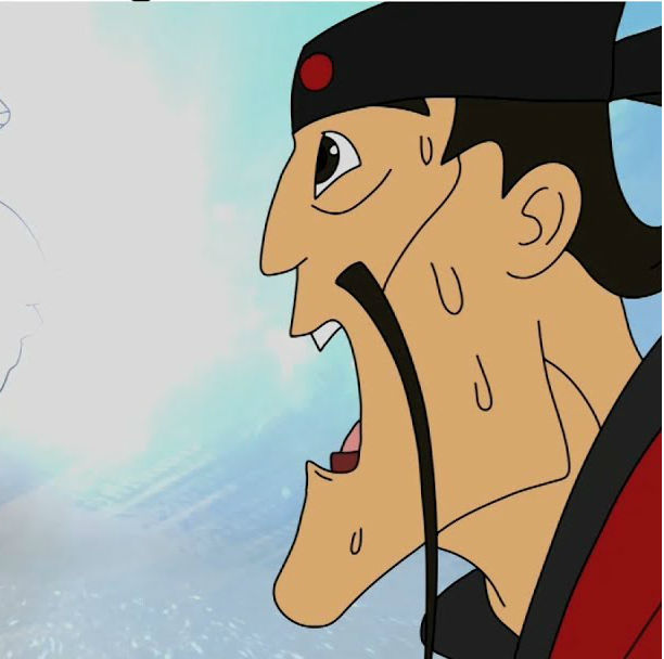 Đúng lúc đang vội vã chạy thì bỗng nhiên ông nhìn thấy ở lưng chừng núi phía trước có ngôi chùa đổ nát. Thế là ông ba chân bốn cẳng chạy vội vào trong miếu. Lúc này ngoài trời đã tối hoàn toàn rồi. Ông nghe thấy từ góc tường có người nói rằng: