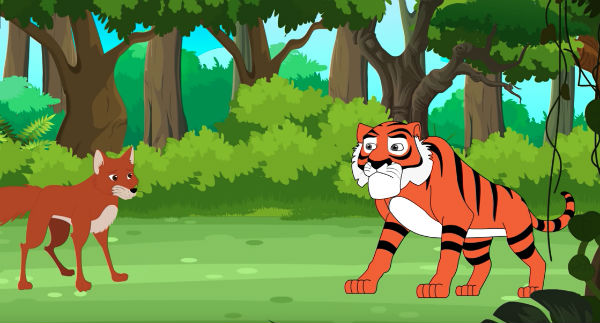 Hổ ta thấy lá rụng rào rào, tưởng cây sắp đổ thật, vội vàng cong đuôi nhảy vọt vào rừng mất.
