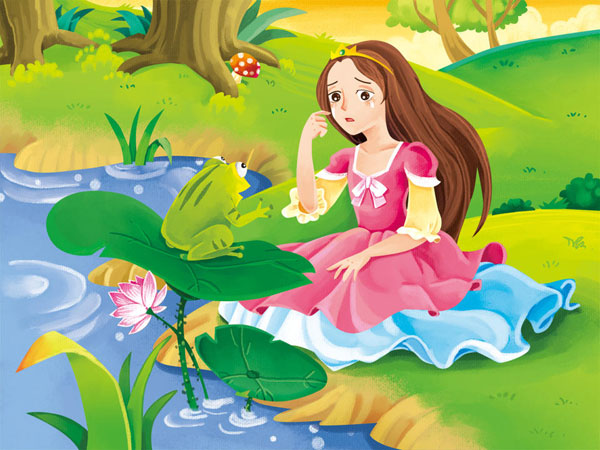 Nàng nhìn quanh xem tiếng nói vang từ đâu tới, chợt thấy một con Ếch nhô chiếc đầu to tướng và xấu xí lên khỏi mặt nước. Nàng bảo: