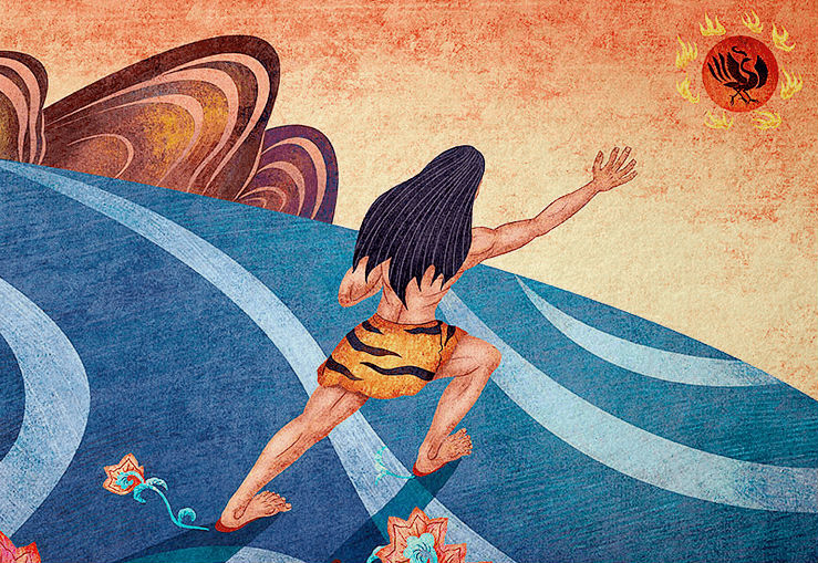 Khoa Phụ bước những bước dài, băng mình đi như bay về phía cánh đồng bao la, đuổi theo mặt trời đang ngả về phía Tây. Chớp mắt, người khổng lồ đã vượt được vài nghìn dặm.
