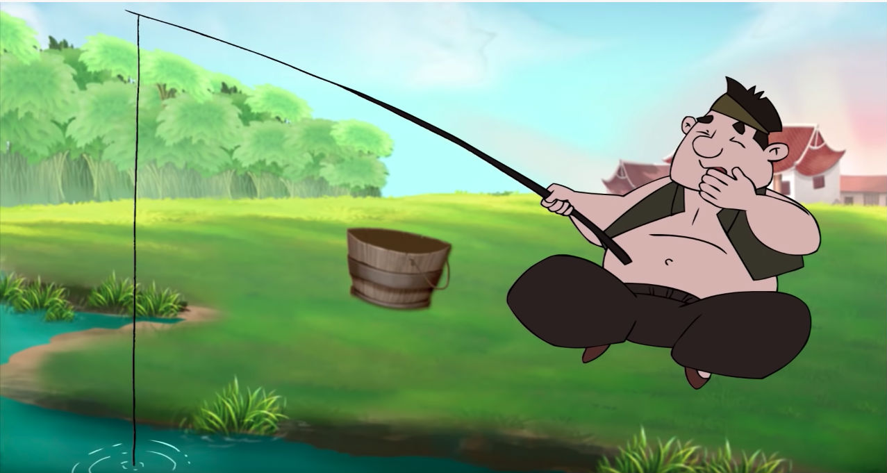 Ngày xưa, có hai người ăn xin đã nhận được món quà: một chiếc cần câu và một rổ cá lớn. Một người lấy rổ cá lơn và một người còn lại thì đã lấy chiếc cần câu, sau đó hai người chia tay nhau rời đi.