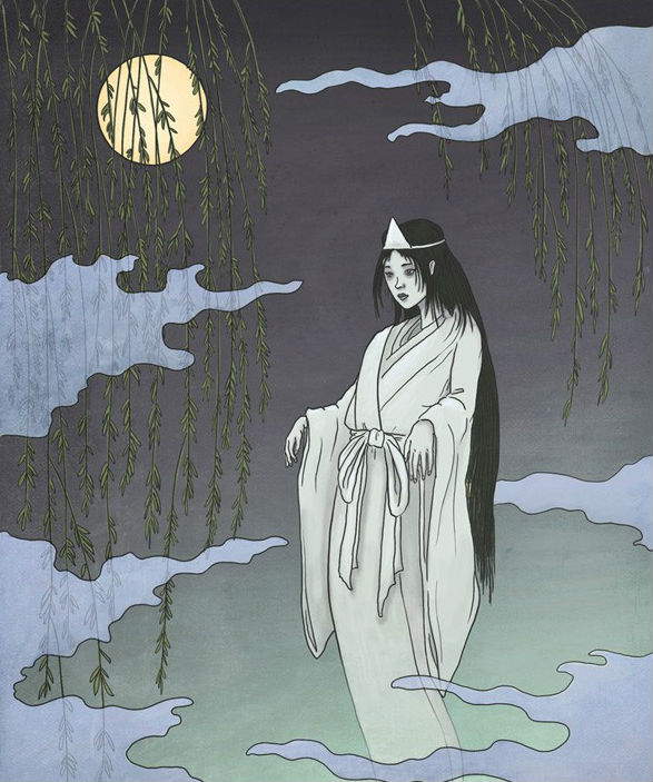 Con đường đi đến ngôi đền từ lâu không có người qua lại. Đi một lát, Dôsinari thấy ngôi đền hư nát lờ mờ hiện ra trong bóng tối. Trên mái nhà hổng một lỗ thật lớn, còn tường thì rạn nứt gãy đổ đến nỗi mèo cũng có thể chui qua chỗ nứt một cách dễ dàng. Khi Dôsanari bước lên hành lang, anh thấy lan can cũ kỹ chỉ còn một đoạn ngắn, còn nền ván kêu két két dưới chân rất nguy hiểm. Sau cánh cửa lớn, một tấm màng nhện rất lớn giăng ngang như tấm màn dày. Ngôi đến hoàn toàn trống trơn ngoài mạng nhện giăng khắp nơi, vài chiếc chiếu cũ và một cái rương đầy bụi bặm.