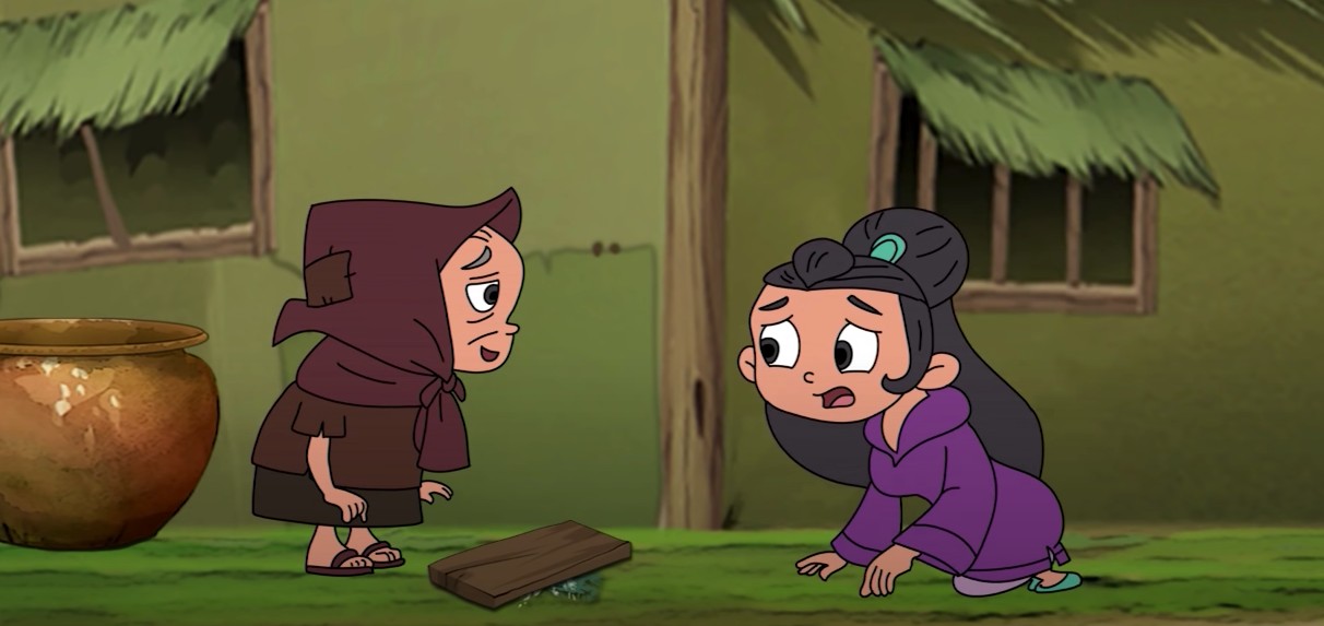 Cô làm việc nhà rất thành thạo và nhanh thoăn thoắt. Từ việc dọn dẹp cửa nhà, cho tới việc quét sân hay là nhổ cỏ vườn rau, cô làm đều rất nhanh nhẹn và sạch sẽ. Sau khi hoàn thành hết những công việc đó thì cô bắt tay vào đong gạo để nấu cơm.