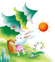 Thế rồi, Cây vươn tán lá ra, giống như một cái ô màu xanh lục, che ánh mặt trời chói chang. Thỏ con chạy tới, vui vẻ nói: “Cảm ơn bạn!”