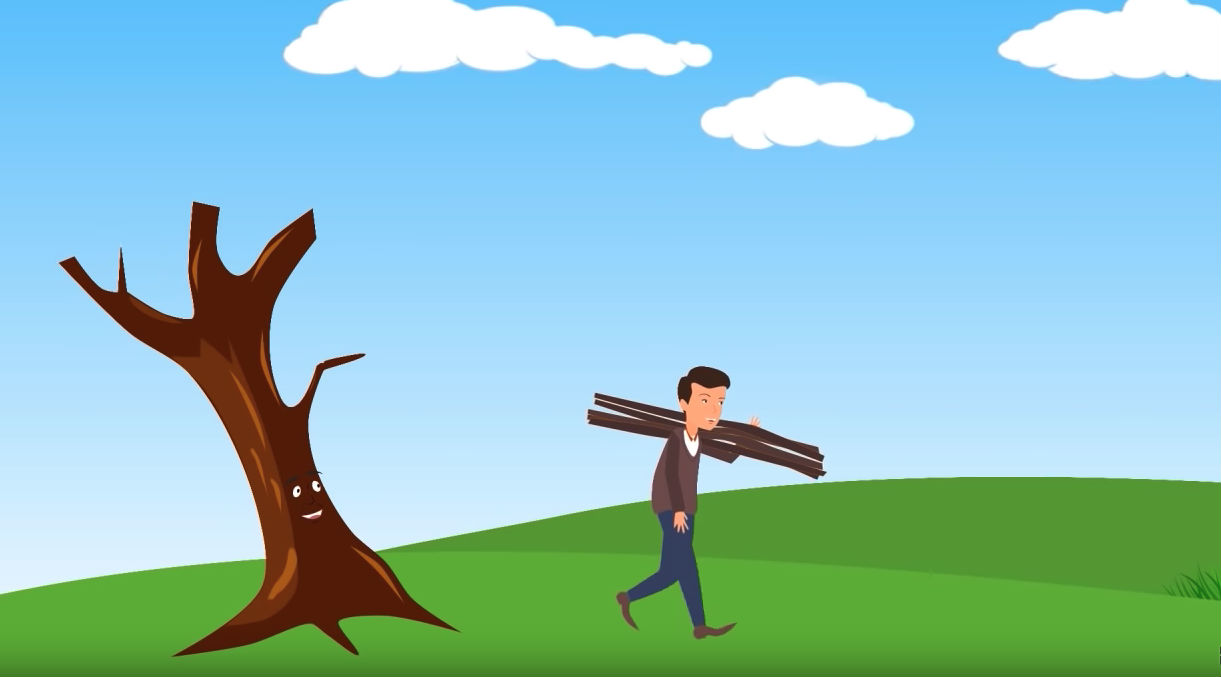 Người tiều phu ngồi trên bờ khóc. Tiếng khóc của anh ta làm kinh động đến thần Hermes, vị thần của những người chăn thú trong rừng. Thần Hermes hiện ra, hỏi:
