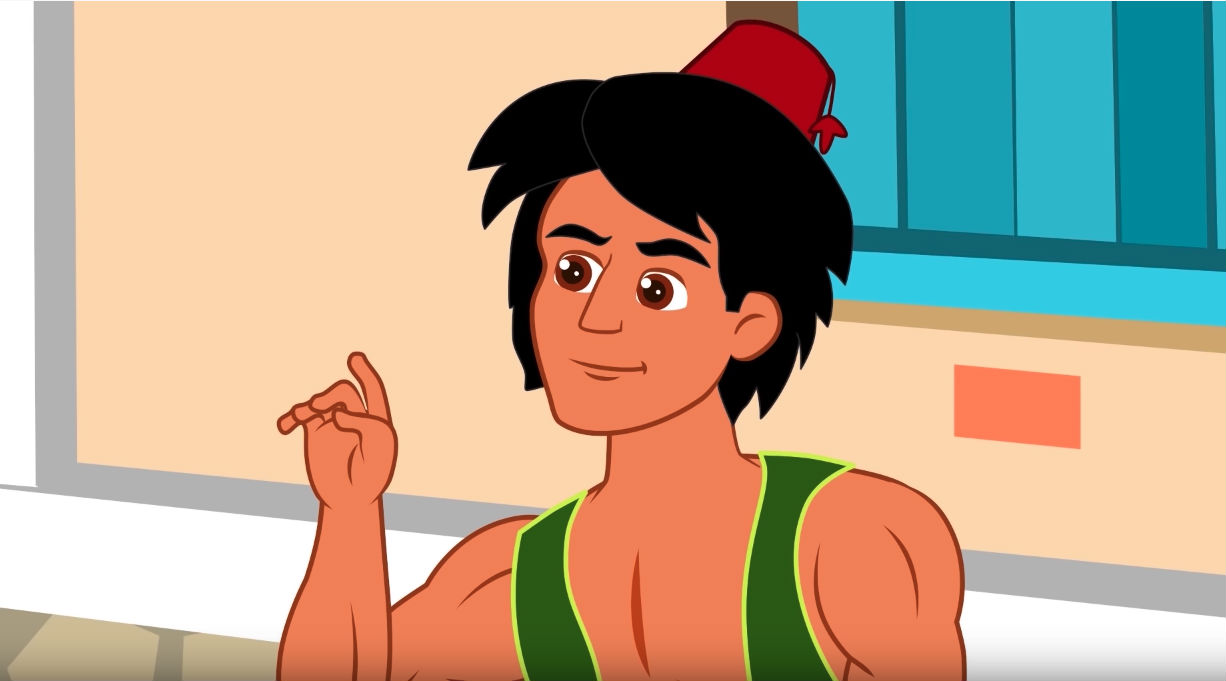 - Tâu bệ hạ, thần rất cảm động trước lời đề nghị của bệ hạ nhưng thần vẫn chưa muốn kết hôn vào lúc này. Thần còn muốn khám phá thế giới và chứng tỏ lòng can đảm của mình. Chúng thần đây là ba anh em. Chẳng có gì khác nhau cả. Khasim sẽ rất vui lòng được sánh duyên cùng công chúa và sẽ xứng đáng kế vị ngai vàng. Anh ấy có một tấm thảm thần có thể đưa anh ấy đi bất cứ nơi đâu hoặc đến với thần khi thần gặp nguy hiểm.