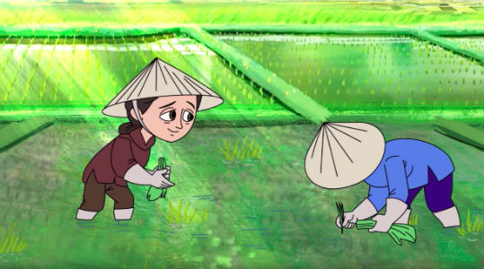 Những bông thóc đầy chín dần trong nắng vàng hoe. Cơn gió đi qua mang mùi thơm lúa chín, mang tiếng rì rào của những hạt thóc reo vào nhau bay xa. Những bầy thú, bầy chim rừng đưa nhau kéo đến cắn phá. Bà chúa Vĩnh gọi mọi người ra săn bắt, đuổi đánh chim thú đi.