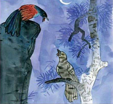 Cả bác Ba và cô gái về sau đều hóa thành chim. Hai con chim đó xuất hiện ở vùng rừng núi Thái-nguyên, Bắc-cạn là vùng xảy ra câu chuyện. Hai con chim kiếm ăn từ nhá nhem cho đến mờ sáng: một con đàng này núi, một con đàng kia núi, một con kêu: “Năm trâu sáu cột“, một con đáp: “Bắt cô trói cột”. Người ta nhận tiếng kêu của từng con một mà đặt tên.