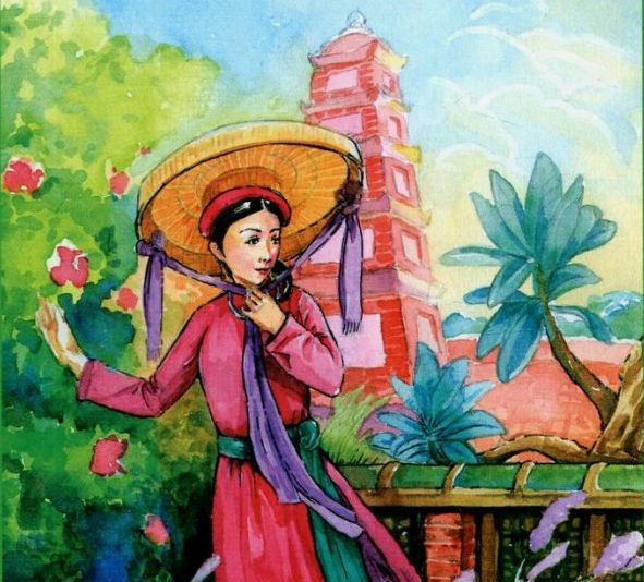 Ngày xưa ở xã Bình-Quân, huyện Cẩm- giàng, có vợ chồng một phú ông nọ sinh được mỗi một cô con gái. Cô xinh đẹp nhất làng, tính nết lại dịu dàng, hiền hậu. nhân nhà cô có nuôi thầy cho con trai học, phú ông cũng cho con gái theo đòi nghiên bút. Cô rất thông minh học chóng tiến tới, chẳng bao lâu đã thông kinh sách.