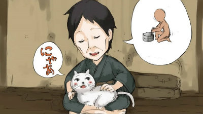 Tôi là đầy tớ Dukikô – cô gái đáp – Tôi chỉ có một người bạn duy nhất, một con mèo đen, nhưng nó bỗng biến mất. Tôi khóc thật nhiều, rồi một hôm, có một nhà thuyết pháp khuyên tôi nên đến dãy núi Inaba nằm trong đảo Kiusu mà tìm. Tôi đã đi nhiều ngày, hôm nay mới đến được đảo. Nhưng tôi quá yếu không thể đi tiếp được nữa. Cô làm ơn cho tôi ngủ nhờ đêm nay để sáng mai leo lên núi mèo được không? Tôi sẽ không làm rộn trong nhà đâu.