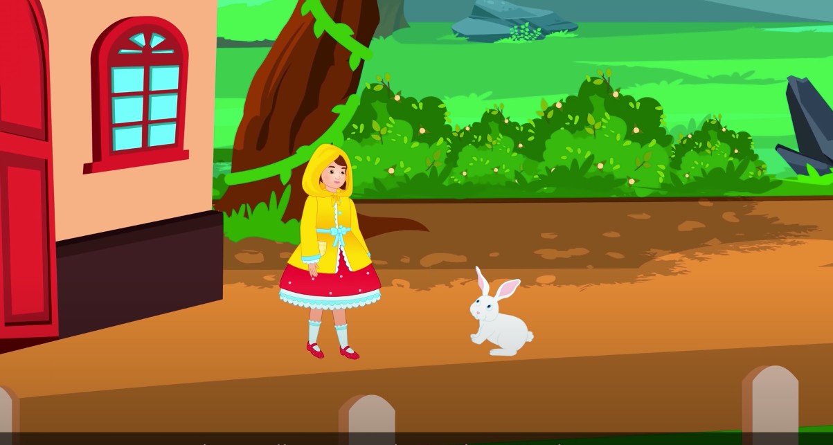 Cô cầm mũ đưa cho đứa bé. Cô tiếp tục đi, đi được một quãng nữa thì lại gặp đứa bé đang bị rét cóng vì không quần áo, cô bé đưa cho nó chiếc váy của mình. Khi tới một cánh rừng thì trời bắt đầu sập tối, lúc đó có một đứa bé đi lại phía cô và xin cô cái áo mặc cho đỡ rét. Cô bé liền nghĩ bụng: