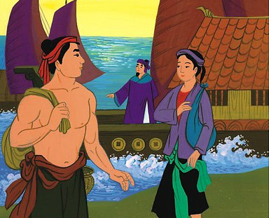 Ngày xưa có người lái buôn tên là Vạn Lịch. Hắn ta buôn to, giàu có vào hạng nhất nhì trong nước. Hắn có ngót một trăm chiếc thuyền dùng vào việc chở hàng. Chiếc thuyền riêng của Lịch có buồng ăn, buồng nằm.... không khác gì nhà ở trên đất. Xung quanh chỗ ngồi trang sức bằng gấm vóc. Đồ dùng toàn bằng vàng bạc.