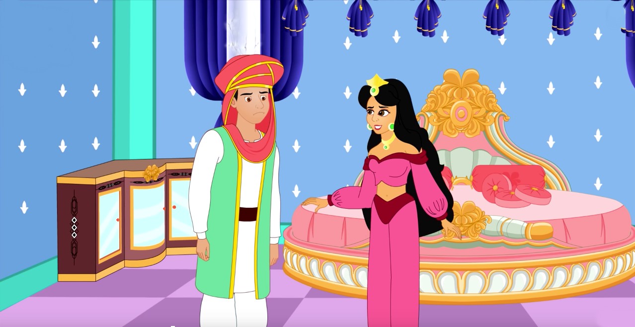 Xưa kia, trong thành Khaleb có một vị vua có khu vườn rất kỳ lạ: Hàng năm, cây cối trong vườn không ra hoa, kết quả mà cho những viên ngọc trai thật đẹp. Nhưng vào một ngày, có con quỷ đã phù phép biến hoá khiến cho không những cây cối không cho quả quý nữa mà ai ngủ qua đêm trong vườn sẽ bị chết thảm khốc. Vào buổi sáng, người ta đã thấy xác của một chàng trai can đảm bị chặt ra làm hai mảnh.