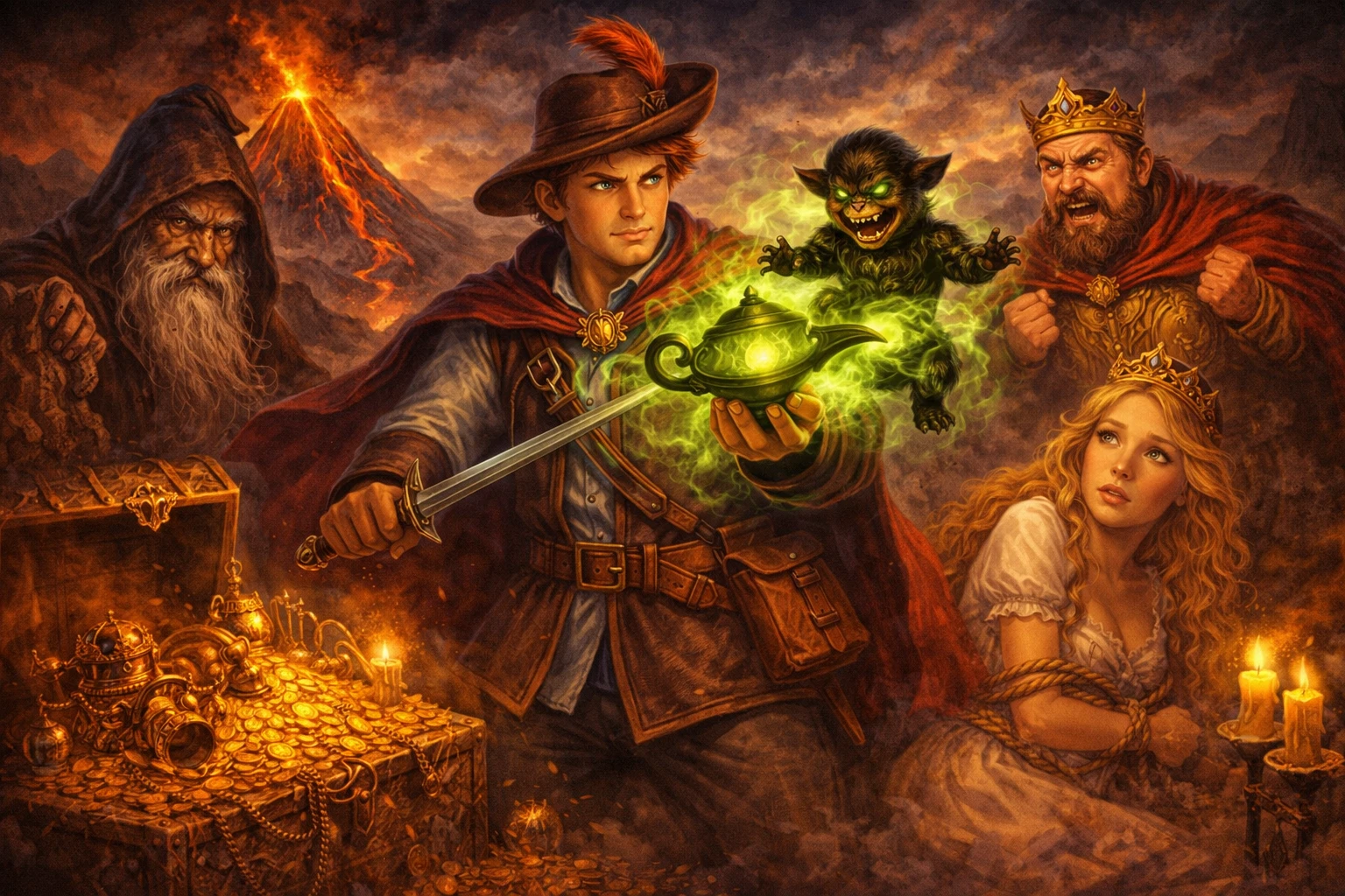 Người lính già chẳng biết làm gì để sinh nhai, buồn bã, đi thơ thẩn suốt ngày, buổi chiều đến một khu rừng. Trời tối, bác thấy ở đằng xa có ánh đèn, bác lại gần thì ra là nhà một mụ phù thủy.