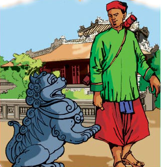 Ngày xưa, có người học trò hôm nào đến nhà thày cũng phải đi qua một nơi có con chó đá. Khi người ấy qua thì con chó đá nhỏm dậy tỏ vẻ mừng rỡ. Người học trò lấy làm lạ, một hôm đứng lại hỏi con chó rằng:
