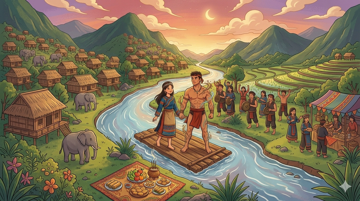 Hai vợ chồng ông già rất mực yêu thương đứa bé. Có bao nhiêu của cải dành dụm được bấy lâu nay, họ đều đem ra đổi lấy gạo, muối, thịt cá để nuôi Tiều A Lé. Những ngày nắng cũng như mưa, bà già đều ẵm cậu bé trên tay, còn ông già lặn lội khắp nẻo suối khe kiếm thêm con ốc, con cua khe về nuôi bé.